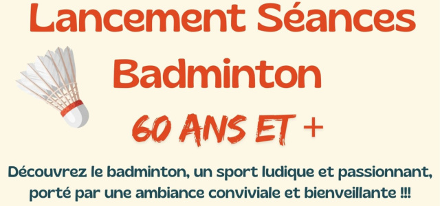 En ce début d'année 2026, le Club a lancé des séances de badminton auprès des séniors de 60 ans et plus. Après 2 séances de découverte, Margaux, notre entraineure, poursuit le dispositif tous les lundis de Février à Mai 2026. Pour plus d'informations et inscriptions, contactez nous : @email ou au 06.16…